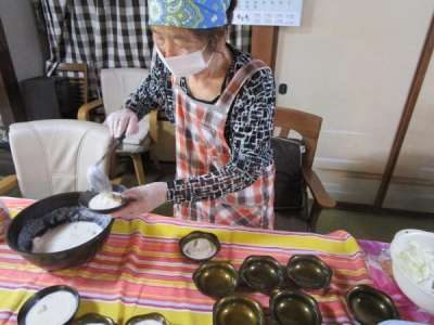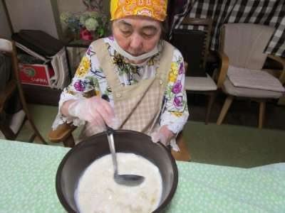 調理レクリエーションは和みの母や父たちが