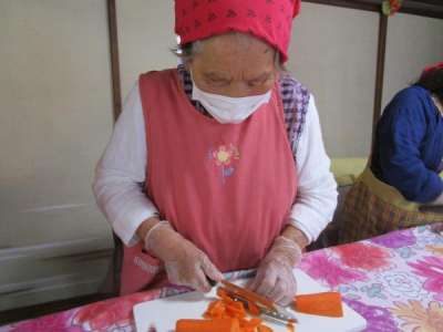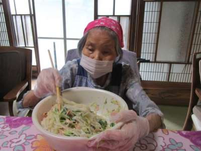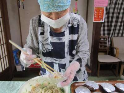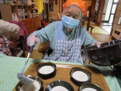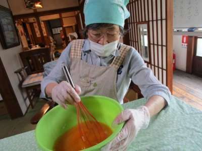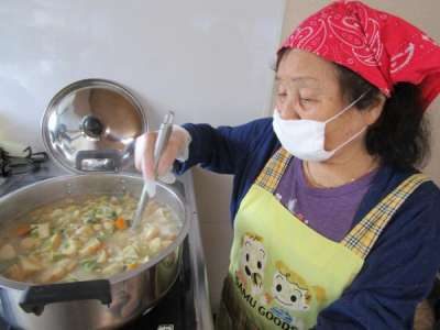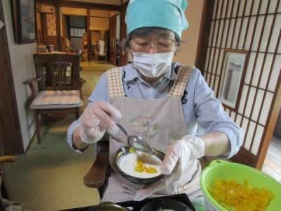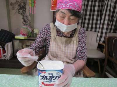 豆乳バナナヨーグルトづくりも和みの幸望庵の母たち
