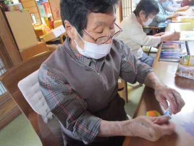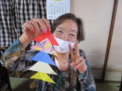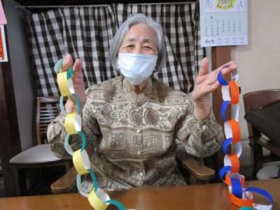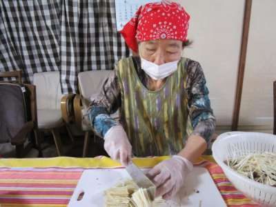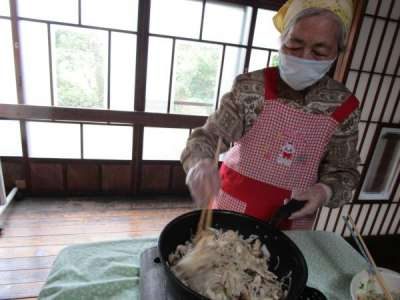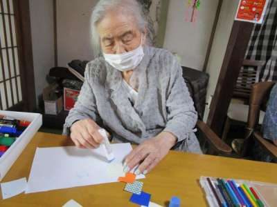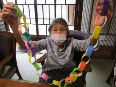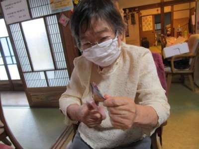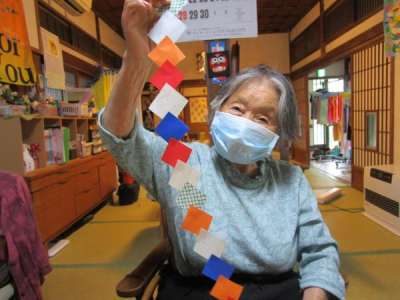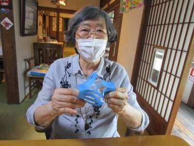 半紙で大きな網飾りの作り方を教えてくださる母です