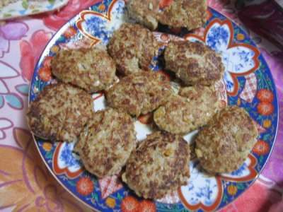 みじん切りした玉ねぎとひき肉をよーくこねて