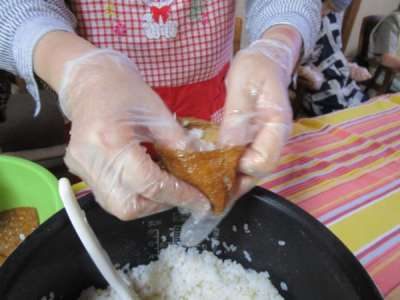 いい香りの酢飯は さらに 味のしみたおあげの中へ