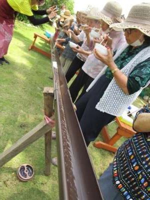 本格的な流しソーメンにみなさま驚き