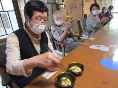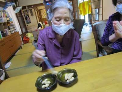 まずはピーナッツつかみ!