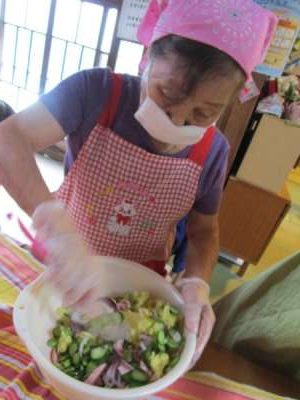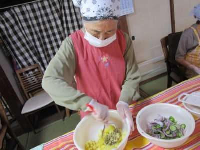 キュウリ・レッドオニオン・枝豆・ハムを入れた