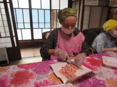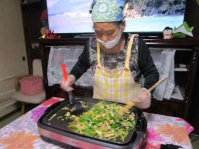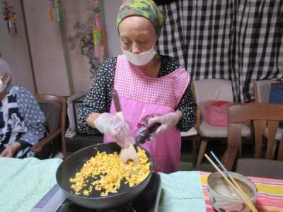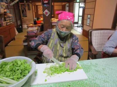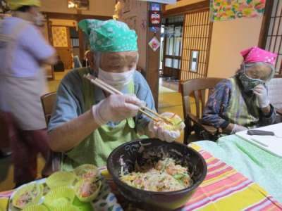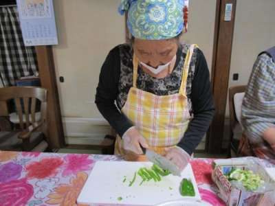 利用者さま達 それぞれが協力しての昼食作り