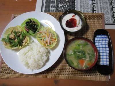 父も 春雨サラダくぉ盛り付けて