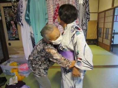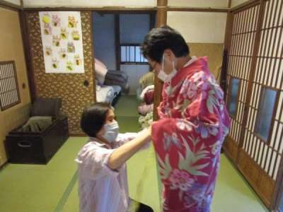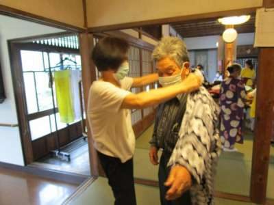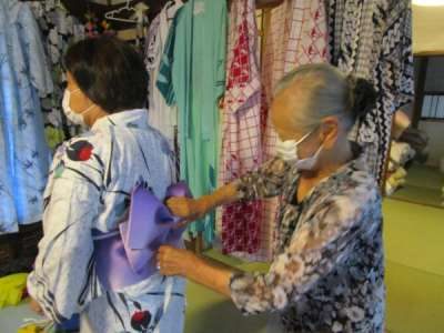 母たちは浴衣や着物を着せる手際の良さもお見事