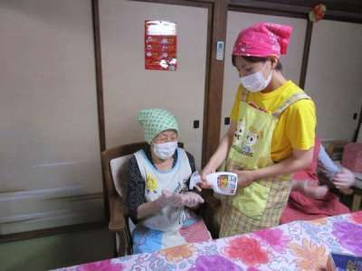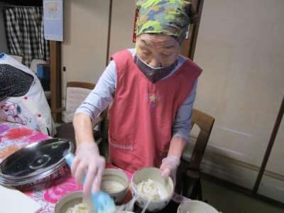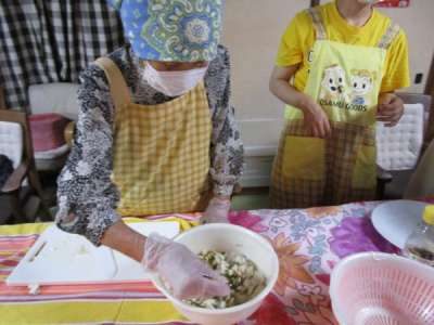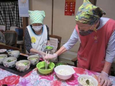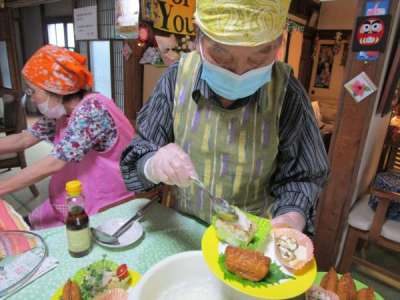 利用者様同士 協力しての昼食作り連帯感が生まれ