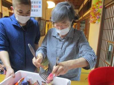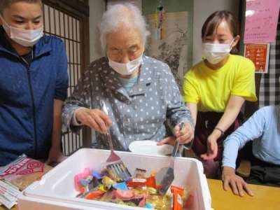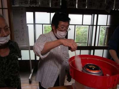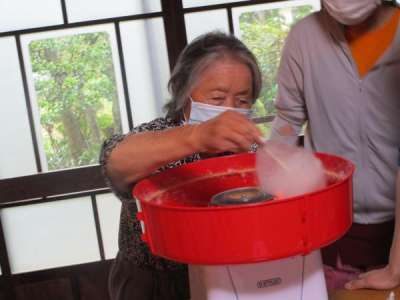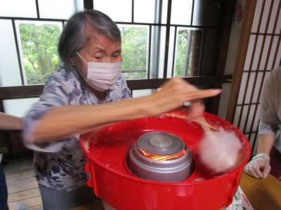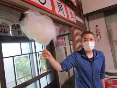 最後に スタッフ池ちゃんが大きな綿あめをつくって