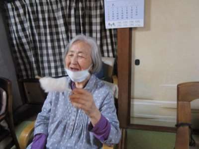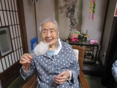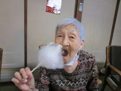 甘い甘い綿あめを美味しい😋と召し上がっていました