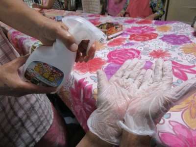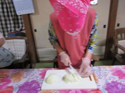 目の痛いのを我慢してexclamation and question 玉ねぎスライスあせあせ (飛び散る汗)