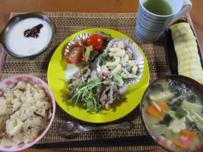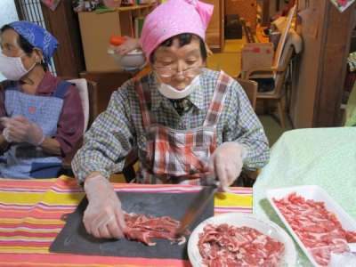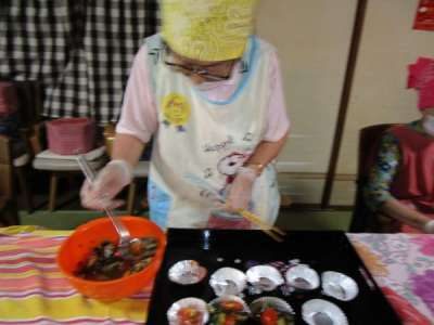 豚肉炒めをして下さった母は 今度は盛り付けにるんるん (音符)