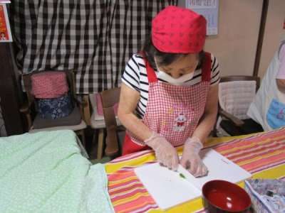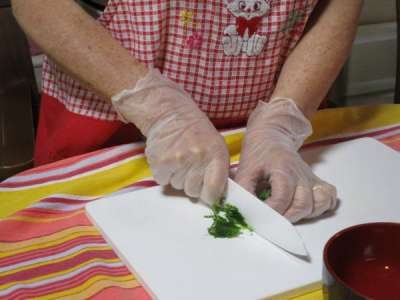 今日は大葉(しそ)を細く千切りにひらめきひらめき