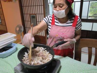 父は紫玉ねぎのスライス目 母は椎茸の千切目