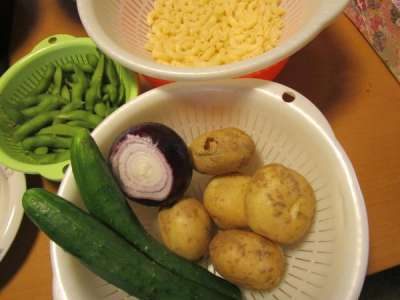 きゅうり・レッドオニオン、枝豆、マカロニを使った