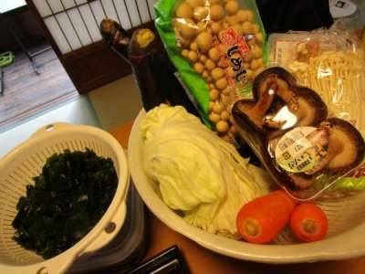 わかめ、キャベツ、人参、 しめじ、えのき