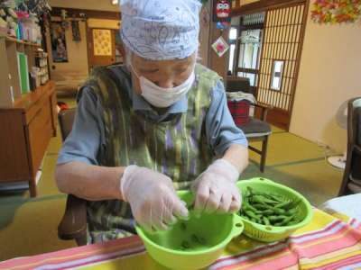 枝豆をさやから出していきます