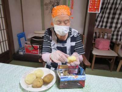 ゆでたジャガイモの皮をむいていきます