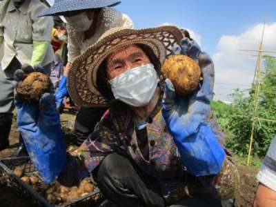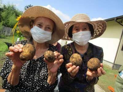 今日のおやつは 採れたてのジャガイモを蒸かして