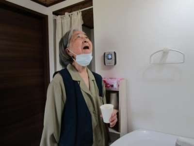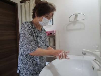 うがいを行い、手指消毒もお願いしています