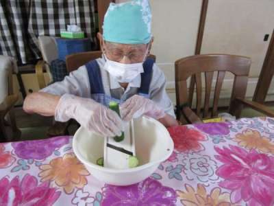 きゅうりを入れてサラダスパゲティー作り