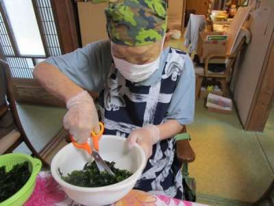わかめを食べやすい大きさに切っていきます