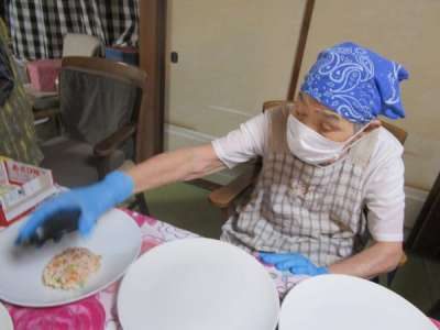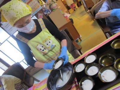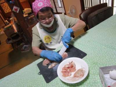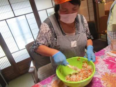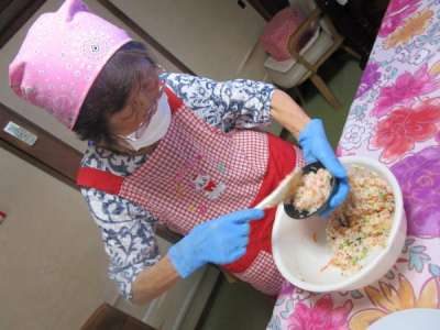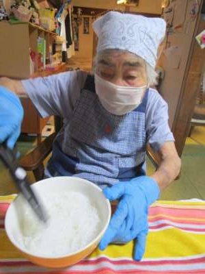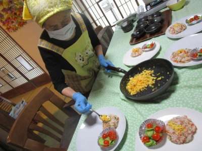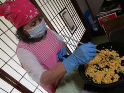 炒り卵を火加減を見ながら 細かい炒り卵を作る母