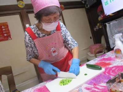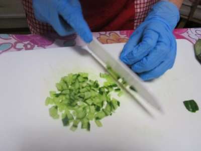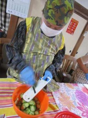 スライサーを使って頂いたきゅうりを薄切りに・・・