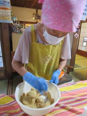 あんこ、きな粉の2種類のおはぎを作りますよ
