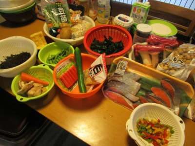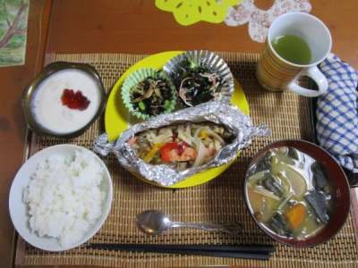 鮭のホイル焼きも完成し、おかずをお皿にのせたら