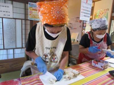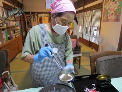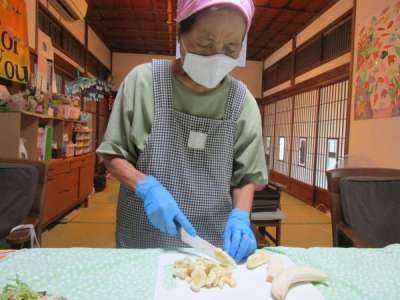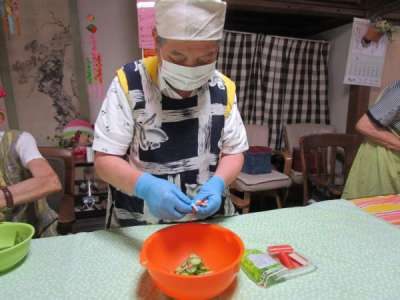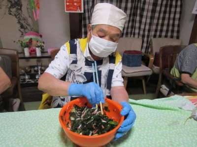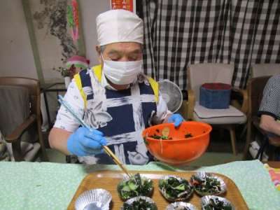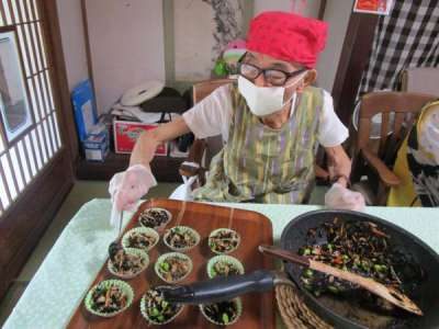 おかずの盛り付けも父たちにお任せしちゃいましたあっかんべー