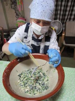 ほうれん草と豆腐を加えて・・・白和え作りひらめき
