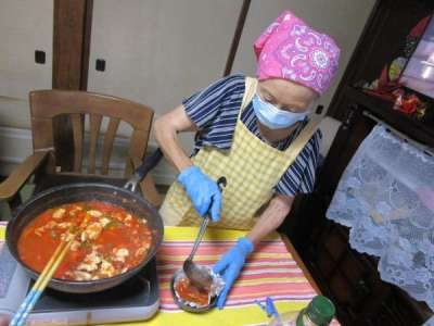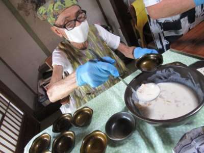 台所では母がお味噌汁作りいい気分 (温泉)いい気分 (温泉)いい気分 (温泉)