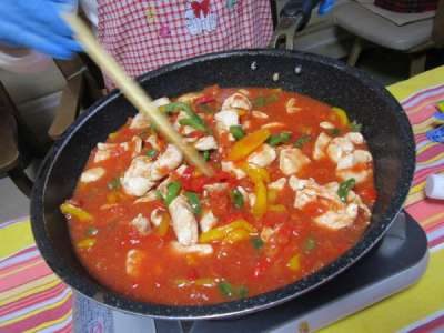 トマト缶、パプリカを加えていきますいい気分 (温泉)いい気分 (温泉)いい気分 (温泉)