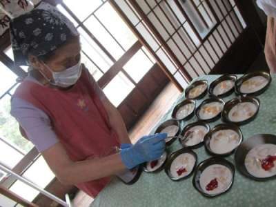 皆さんで皿に盛り付けていきます目がハート (顔)目がハート (顔)目がハート (顔)