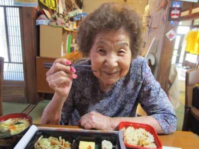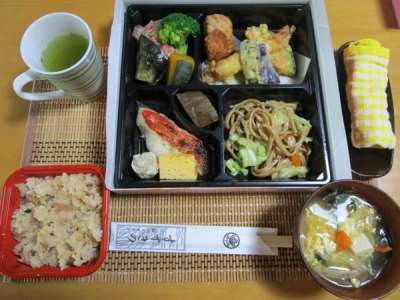 熊谷の「すすきの」さんのお弁当ですうれしい顔おにぎり