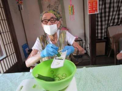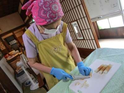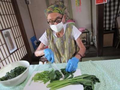 父も小松菜を 見事な包丁さばきでザクザクと…
