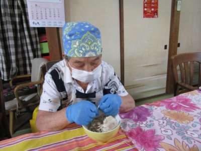 出来上がった酢の物は 母が盛り付け!(^^)!