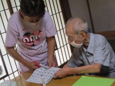 今日の和みの午前レクは10月のカレンダー作り