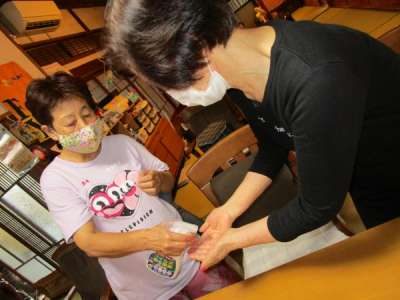 手指消毒を行っています
