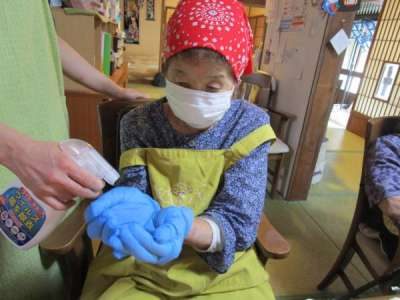 手袋をつけて消毒もしっかりと行います