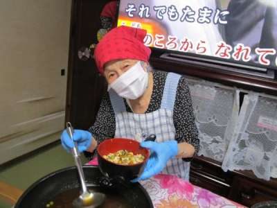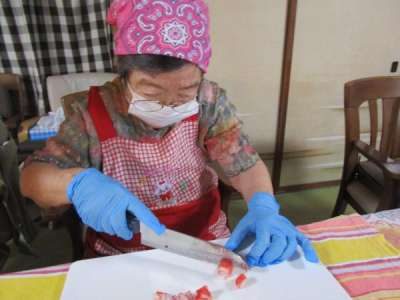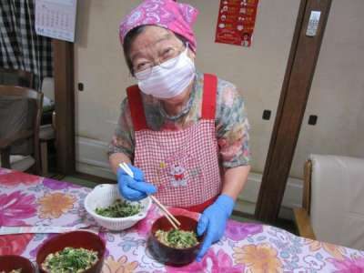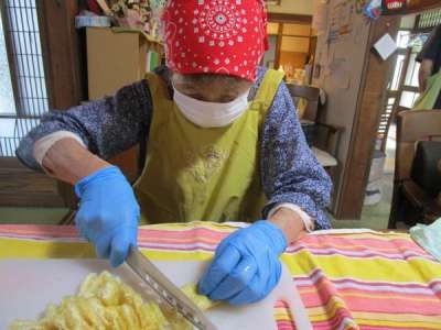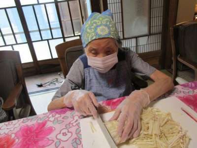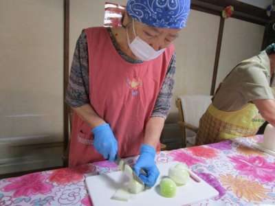 本日のレクリエーションは昼食づくり