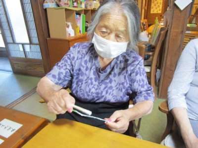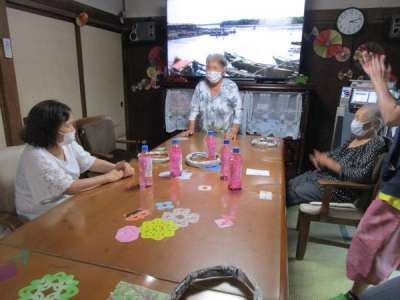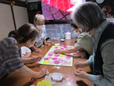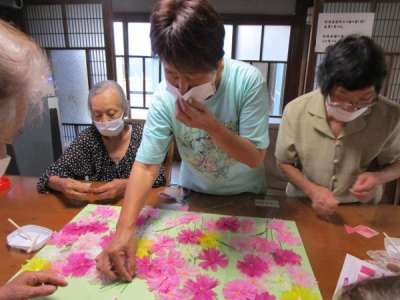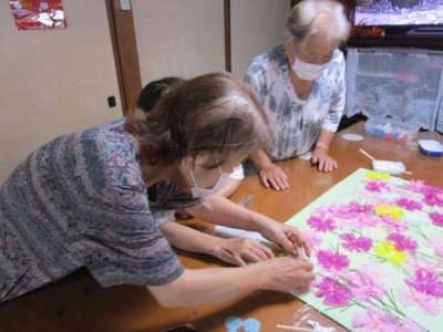 まもなく コスモスの壁面飾りが完成です(*^^*)