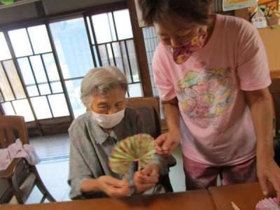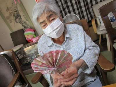 千代紙で作った  扇子の完成ですぴかぴか (新しい)ぴかぴか (新しい)