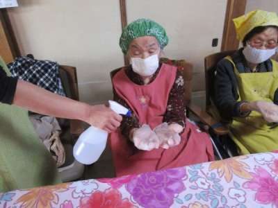 グローブを付けたら 手指消毒double exclamation