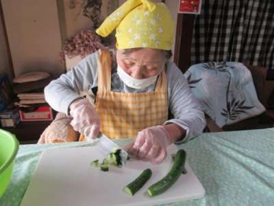 キュウリをサイコロ状に切ったり