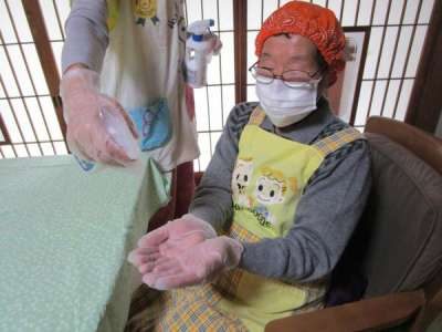 エプロン・三角巾・手袋・マスクを着けて身支度OK🙆