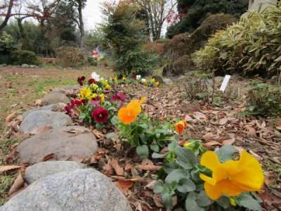 庭の花壇には、綺麗にパンジーが並びました目がハート (顔)