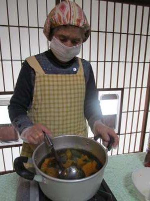 最後に仲良くかぼちゃの煮物をもりつけしたら