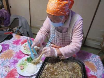 豚肉・玉ねぎをたっぷりと入れて・・・
